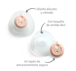Diseñado para llevar dentro del sujetador de lactancia y recoger el let-down de forma pasiva, sin que tengas que hacer nada. Sus suaves copas de silicona se adaptan cómodamente y de manera discreta al pecho para conservar cada gota de tu leche materna.
